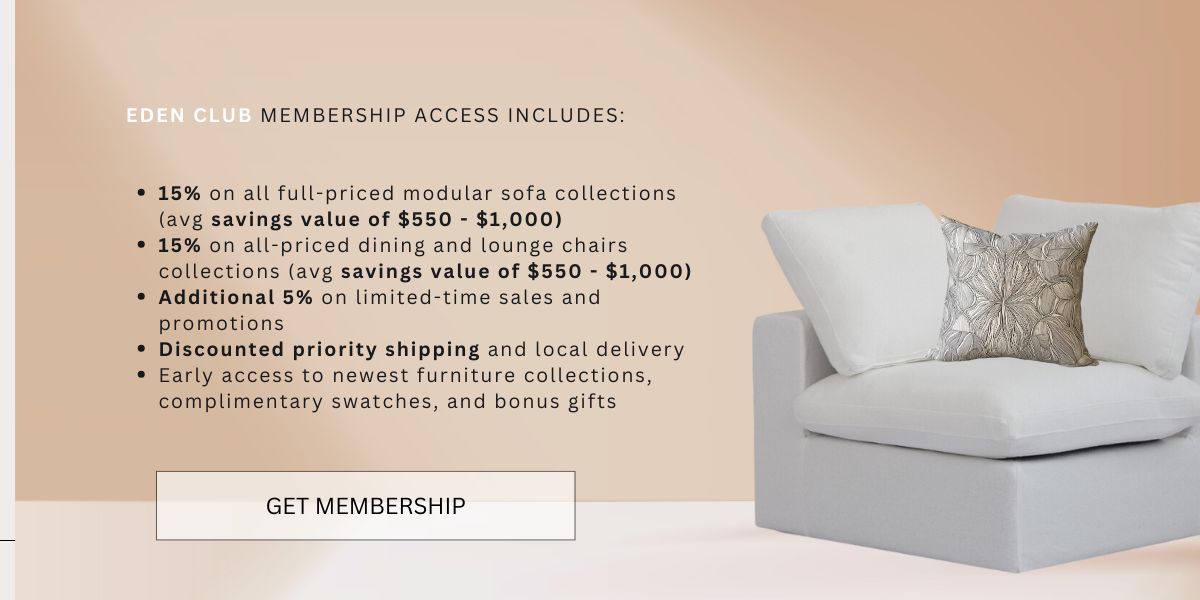 EDEN CLUB is not like any other furniture memberships, which are often based on recurring annual membership fees. When you join, you get lifetime access with one-time membership fee of $200 to gain access exclusive perks. It's the only membership that pays for itself from day one.