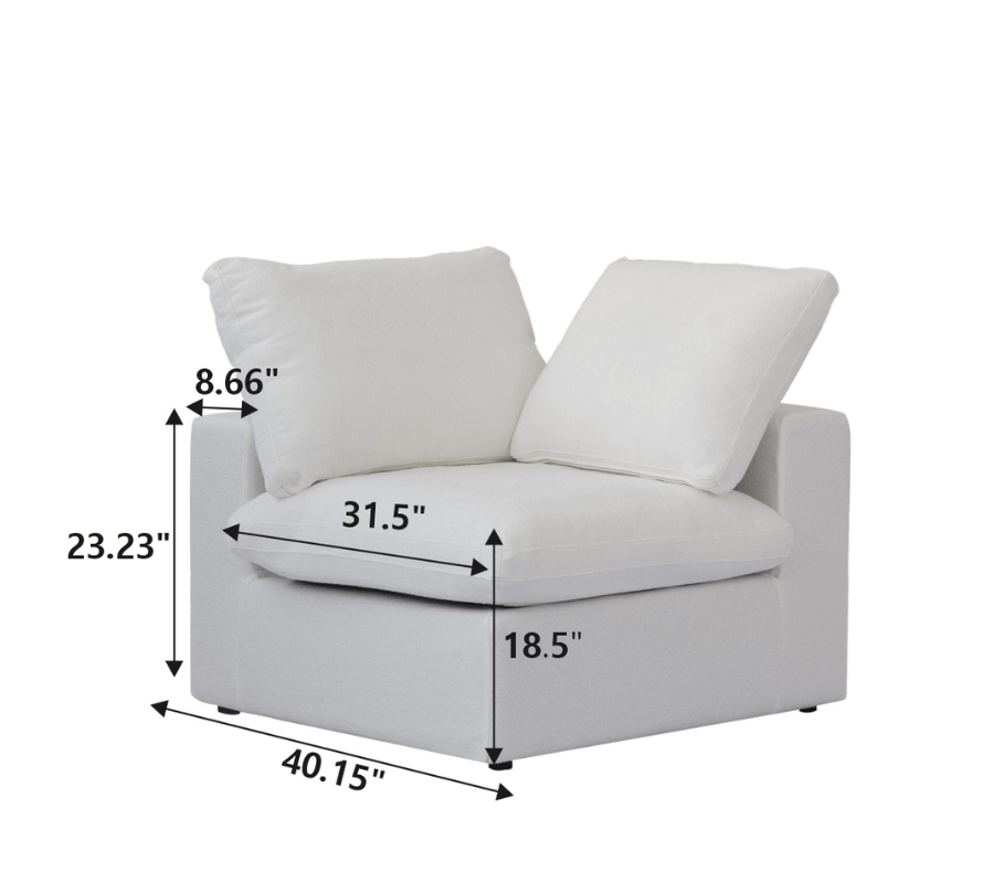 Designed to add additional space to your INIFNITY sofa. The corner module includes all the components pictured and can be used to extend your sofa configuration. Hidden metal module clips located at the bottom of each module prevent pieces from moving apart if necessary.