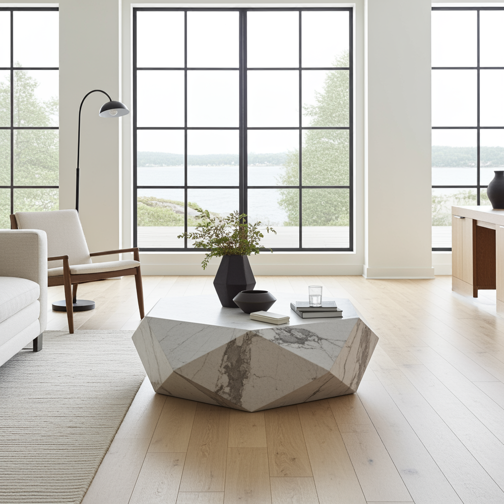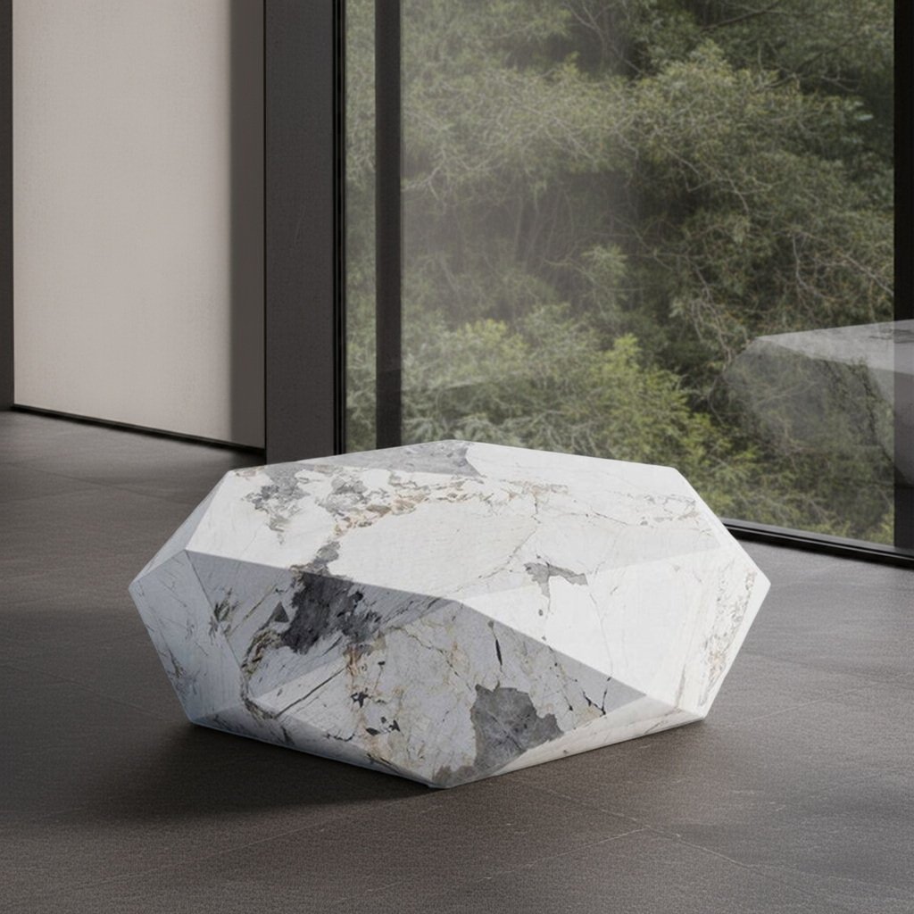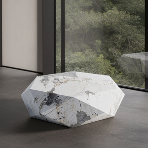 A statement piece for a calm, nature-inspired living space. The RIA Coffee table features a modern geometric design crafted from wood and fine modern veneers, capturing the natural elegance and simplicity of rock formations.